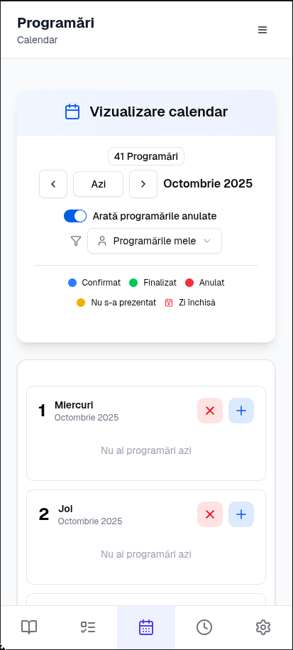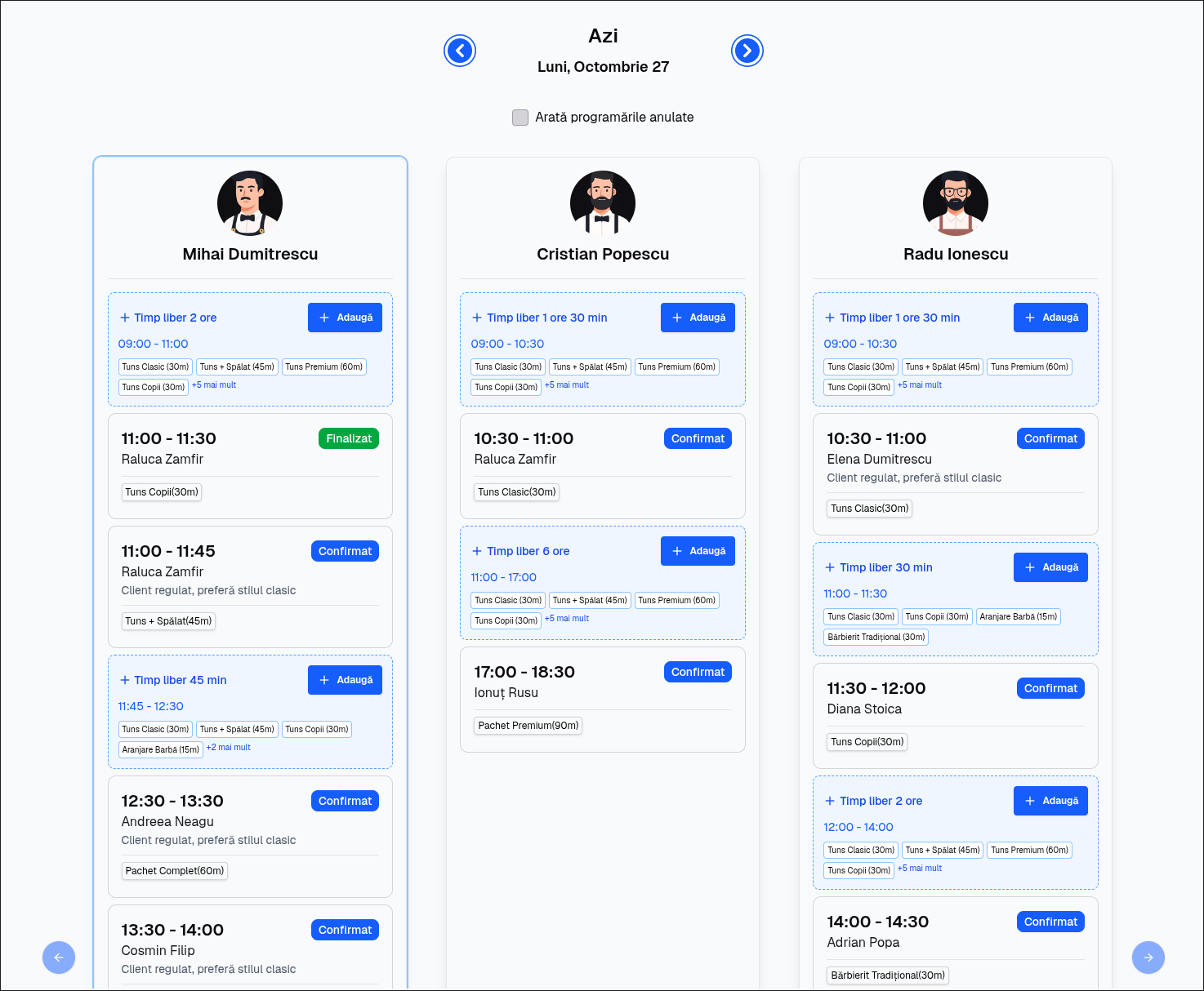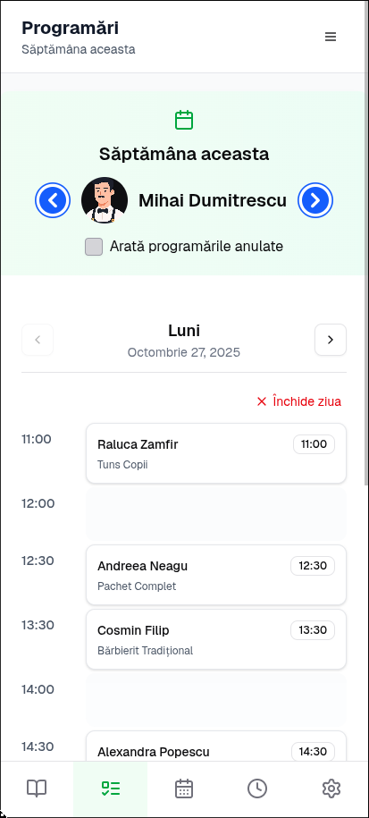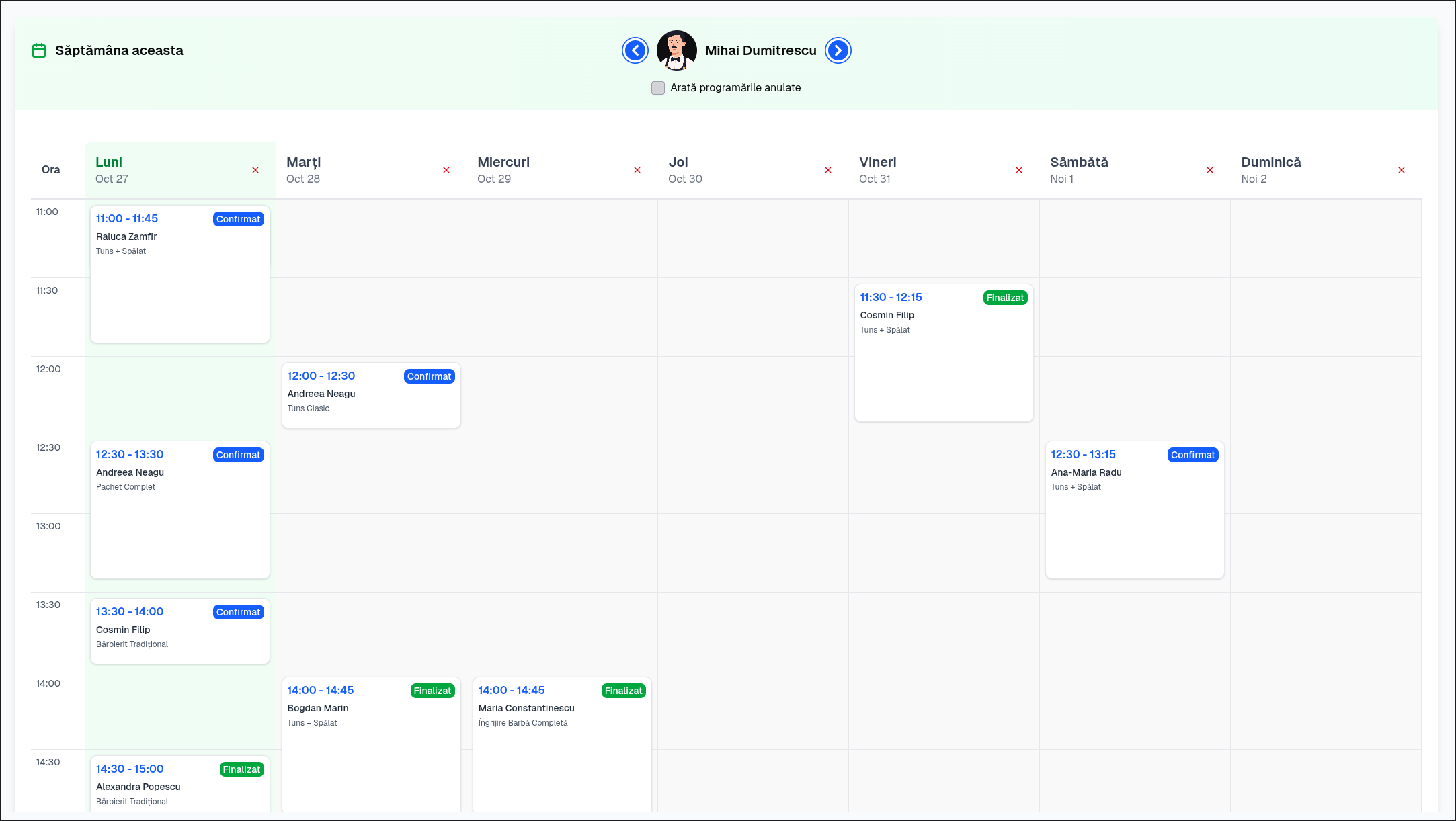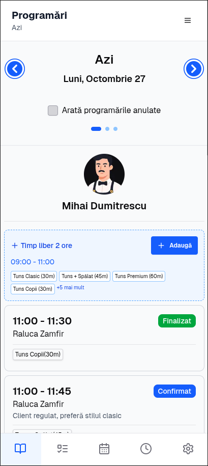 Gestionează programări, clienți și servicii dintr-o singură interfață simplă.